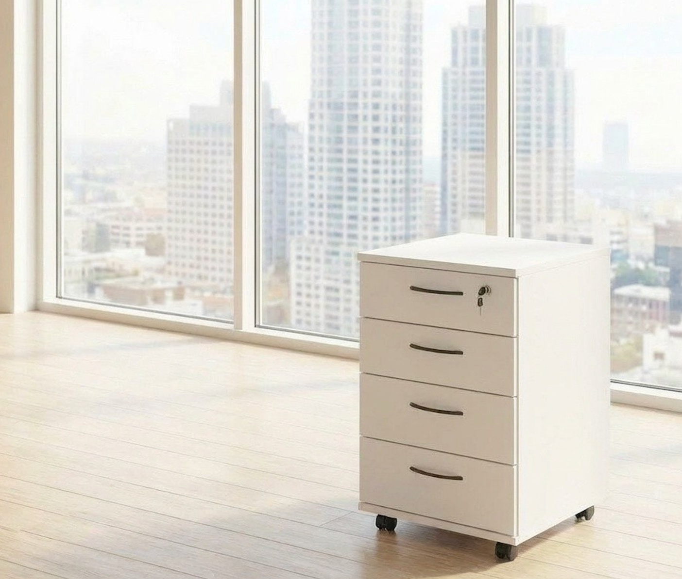 Skuffekabinett med 4 skuffer, hjul og lås